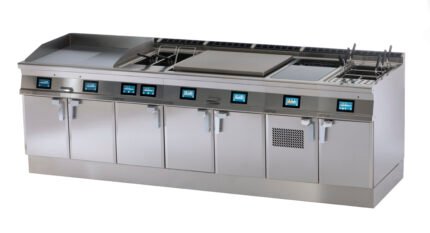 على مستوى السلامة والأداء، تتكامل إشعال كهربائي وصمامات أمان بالترموكَبِل للشعلات، ولهب مُعدّل، وشوايات من الحديد الزهر، ومجمّعات سوائل قابلة للإزالة لصيانة أسهل وتشغيل آمن. يغطي الابتكار تقنيات الحثّ وWok والسو-ڤيد والـSoftcooker، إلى جانب سلاماندر وشوايات حجر بركاني وأسقف زجاج سيراميكي ومراجل تعزّز إنتاجية الطهاة وتنوّع القوائم.