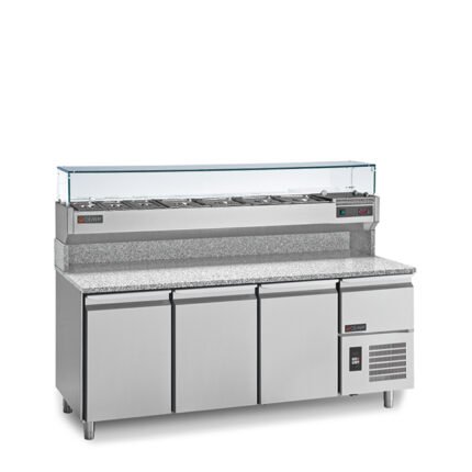 بطاولة تحضير مصممة للبيئات عالية الضغط ستحصل على تنظيم ذكي للمكوّنات مع أحواض مبردة مغطاة تحفظ النكهة وتقلل الهدر، وسطح عمل من الستانلس ستيل الصحي لتهيئة البيتزا والسلطات والساندويتش بلمسة واحدة. نظام تبريد متوازن مع تحكم رقمي يضمن درجة واحدة موحّدة لكل وعاء، فتخرج كل وجبة بنفس الجودة من أول النهار إلى آخره.