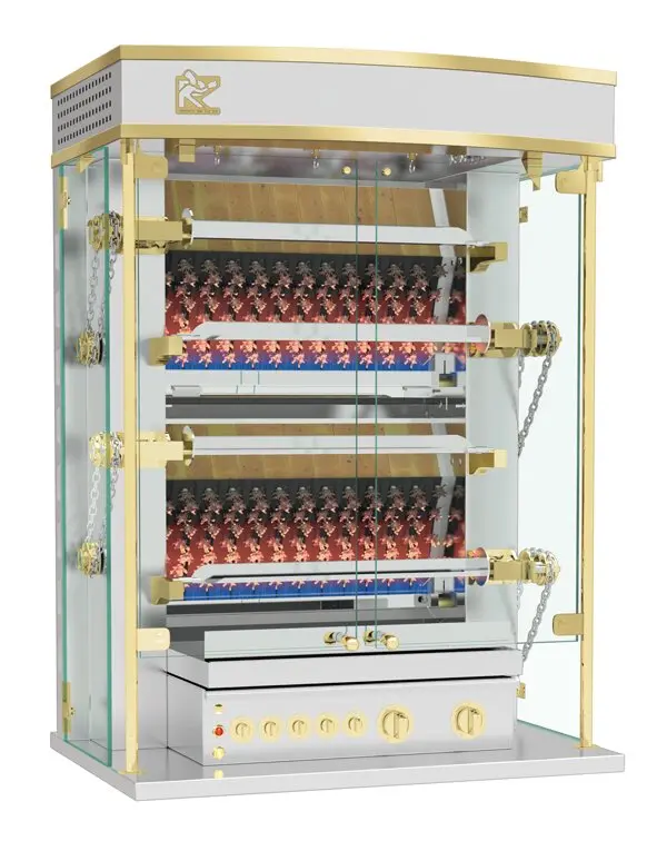 تعتبر شوايات مطاعم أولمبيا من شركة Rotisol الفرنسية الخيار الأمثل للطهاة الذين يبحثون عن التميز في الأداء والجذب البصري. لا تقتصر وظيفة هذه الماكينة على الشواء فحسب، بل هي تحفة فنية تعتمد تقنية الطهي البطيء لضمان نضوج اللحوم واحتفاظها بالعصارة الداخلية مع قشرة خارجية ذهبية ومقرمشة، مما يجعلها قلب المطبخ النابض الذي يجذب أنظار الزبائن.