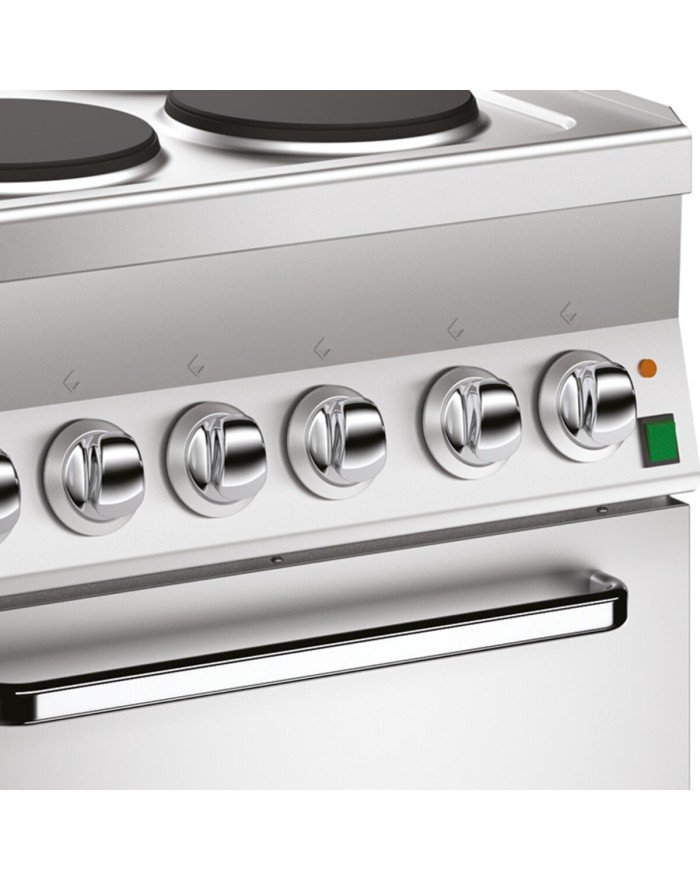 هذا البوتاجاز الكهربائي الاحترافي يجمع 4 ألواح طهي مع فرن GN 1/1 بمروحة لتوزيع حرارة أكثر تجانسًا داخل حجرة الخَبز والتحمير.