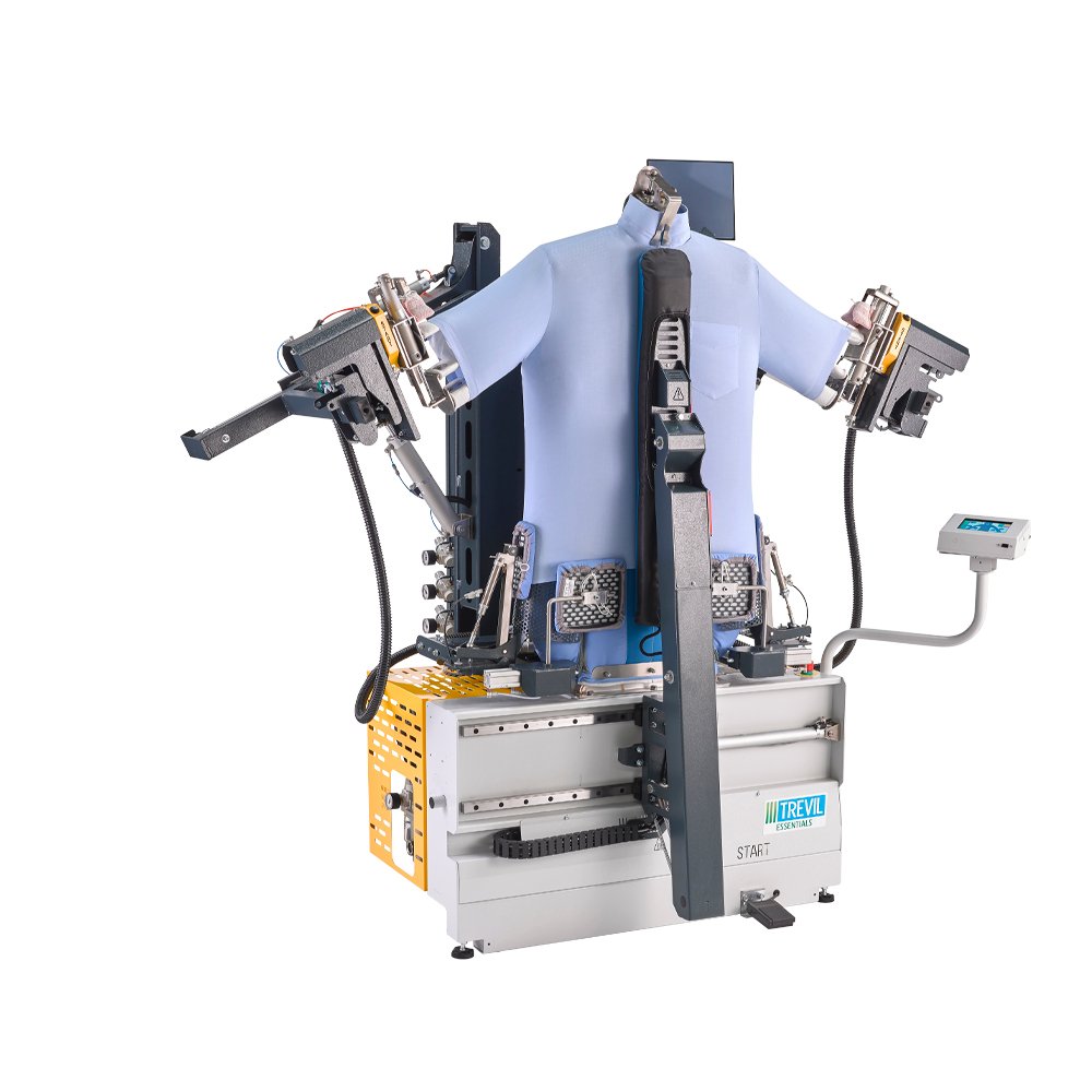 تغطي حلول Trevil نطاقاً متكاملاً: فينيشر قمصان، فورم فينيشر للجاكيت والمعاطف، فينيشر سراويل، طاولات كي شفط/نفخ، مكابس، مولدات بخار، وحدات إزالة بقع وتعقيم، ومكاوٍ وملحقات احترافية.